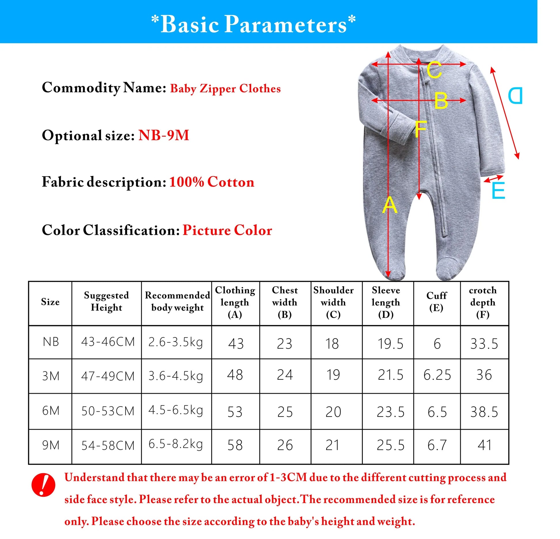 Discover the perfect blend of comfort and style for your little ones with AGLDI Baby Rompers. Lovingly crafted from 100% cotton sourced from Mainland China's Guangdong province, these rompers offer an unmatched level of softness and breathability, ensuring a cozy experience for your precious baby throughout the year. Designed to cater to every stage of your baby's early years, our rompers are tailored for ages 0 to 12 months. From the tender age of 0-6 months to the active explorers aged 7-12 months, these rompers provide the ideal fit, allowing your baby to move freely while looking absolutely adorable.