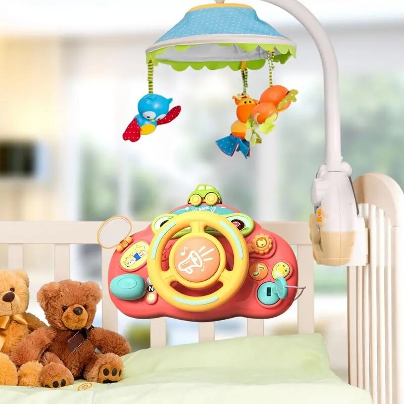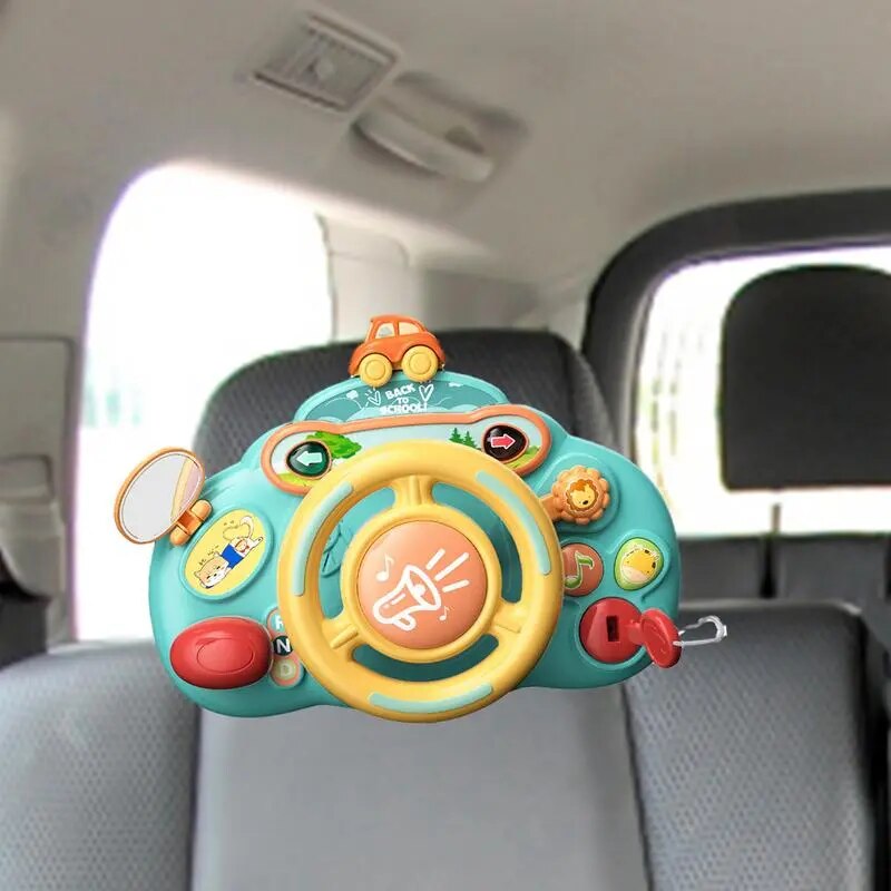 Cartoon Kids Electric Steering Wheel Toy With Lights Music Simulation Driving Car Copilot For Toddler Preschool Interactive Toys