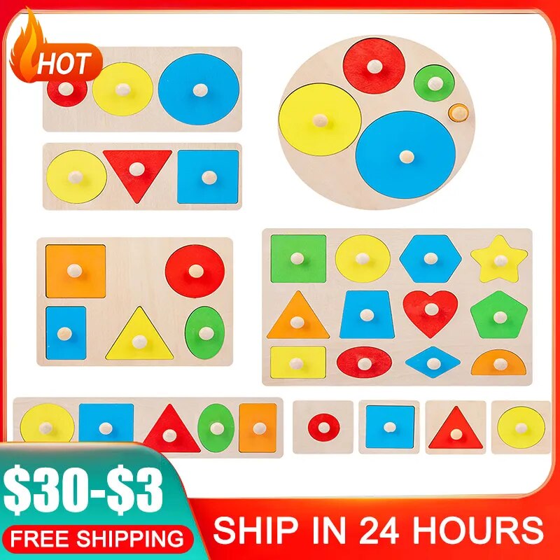 Geometric Shape Wooden Jigsaw Puzzle for Kids Three-Dimensional Hand Grabbing Board Children Early Educational Toys