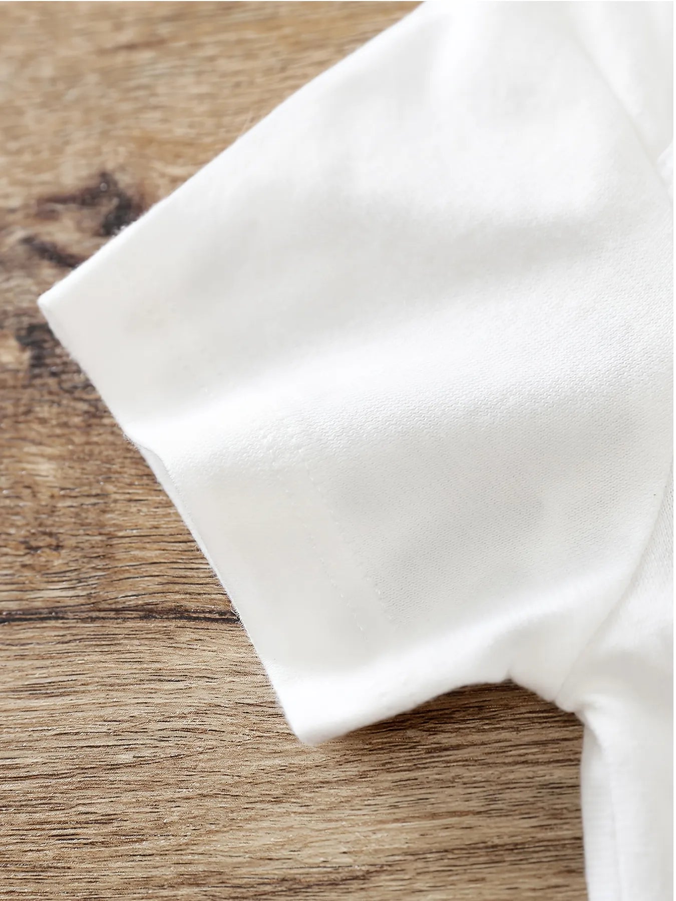 High-Quality White Cotton Baby Onesie with Minimalist Print - Summer Newborn Romper